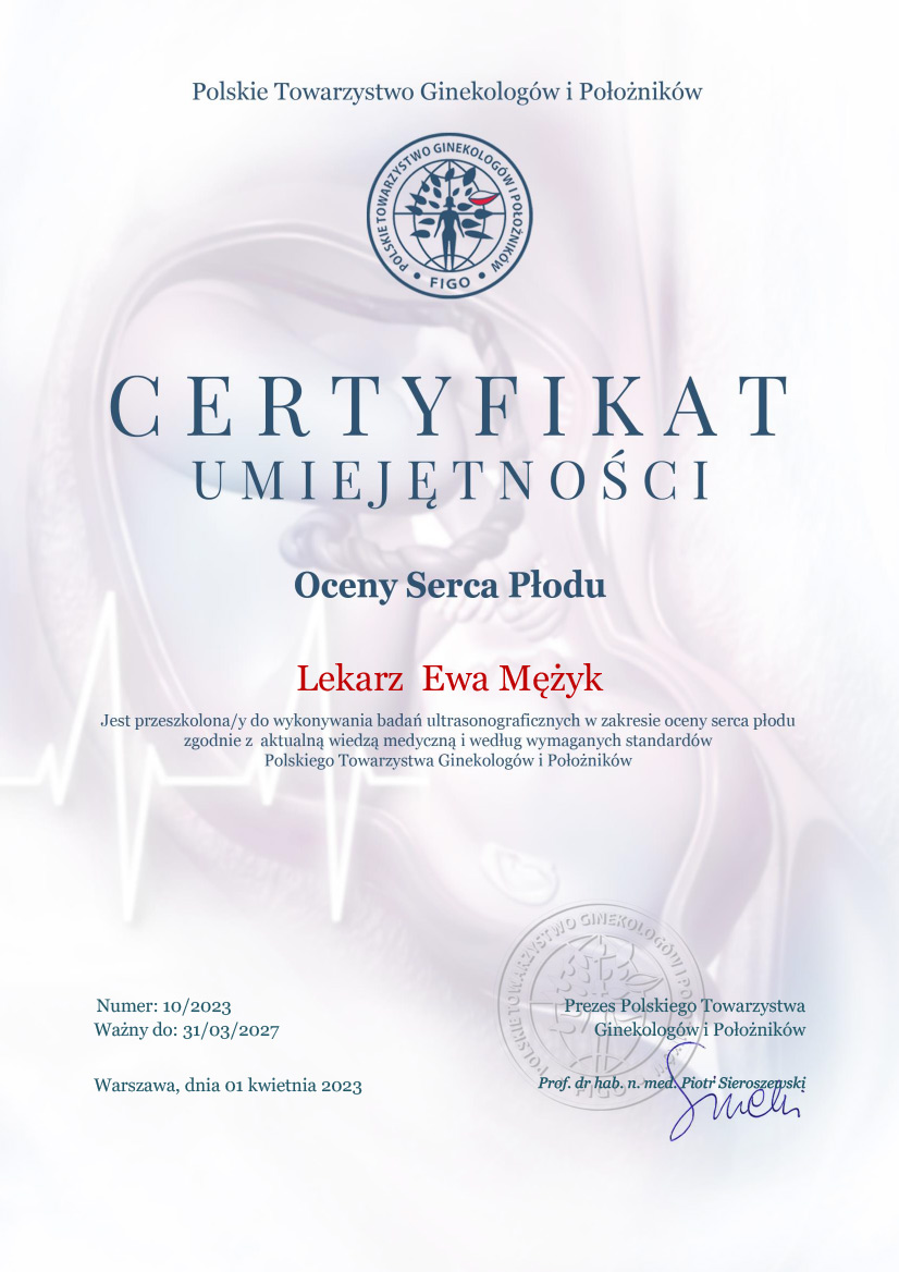 Certyfikat Umiejętności Oceny Serca Płodu PTGIP