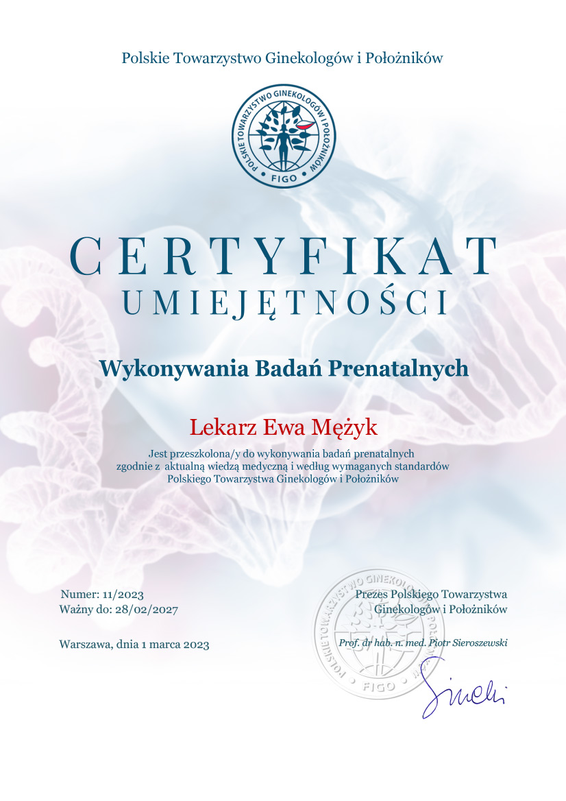 Certyfikat Umiejętności Wykonywania Badań Prenatalnych PTGIP