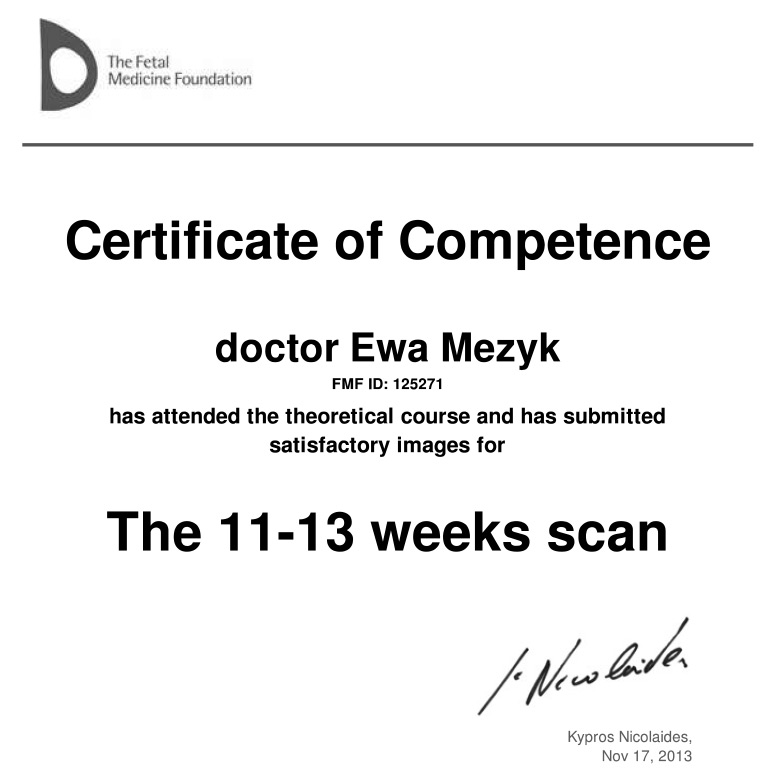 FMF – Certyfikat Fetal Medical Foundation